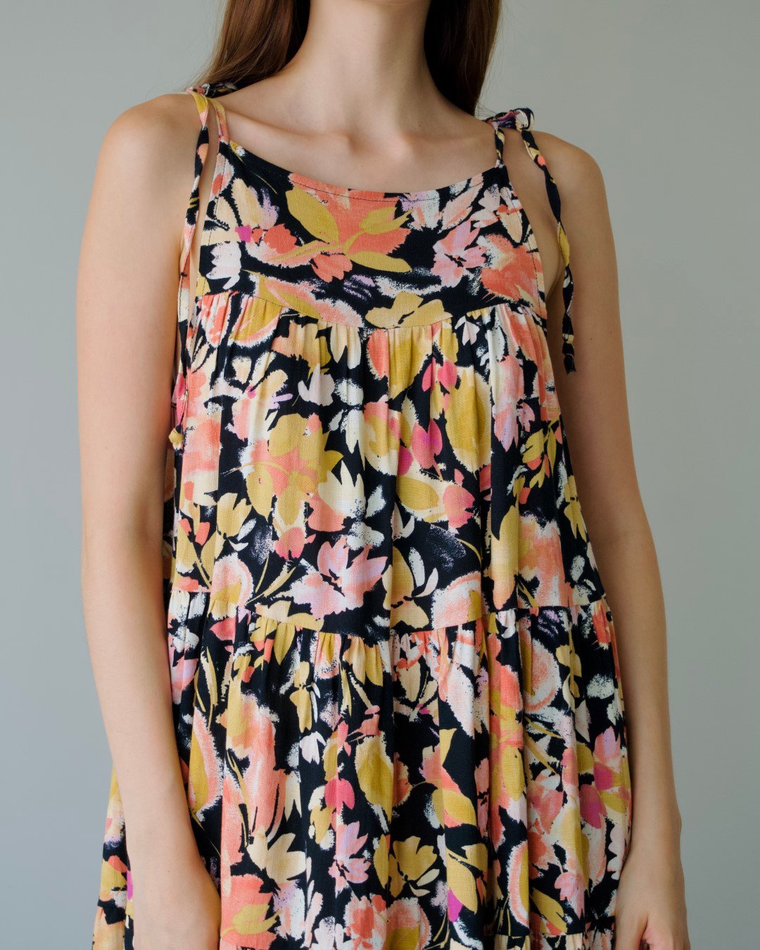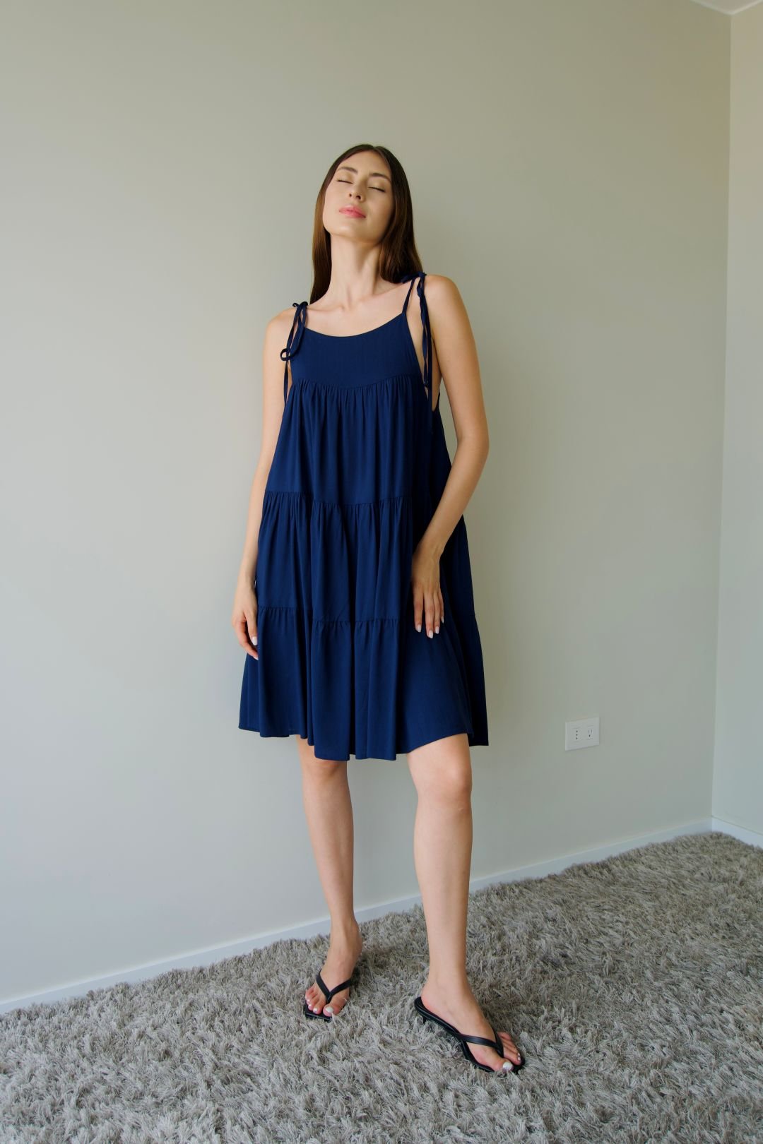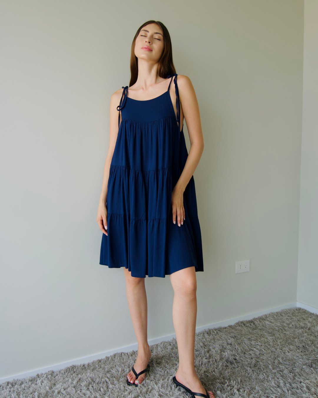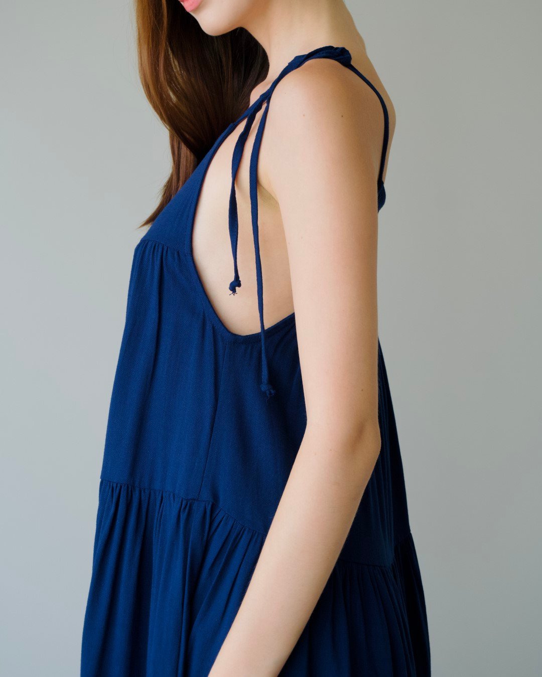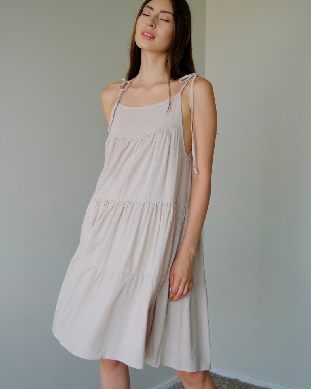 Vestido hecho en Lino Shantu. Con un hermoso vuelo y falda de 3 tiempos.
